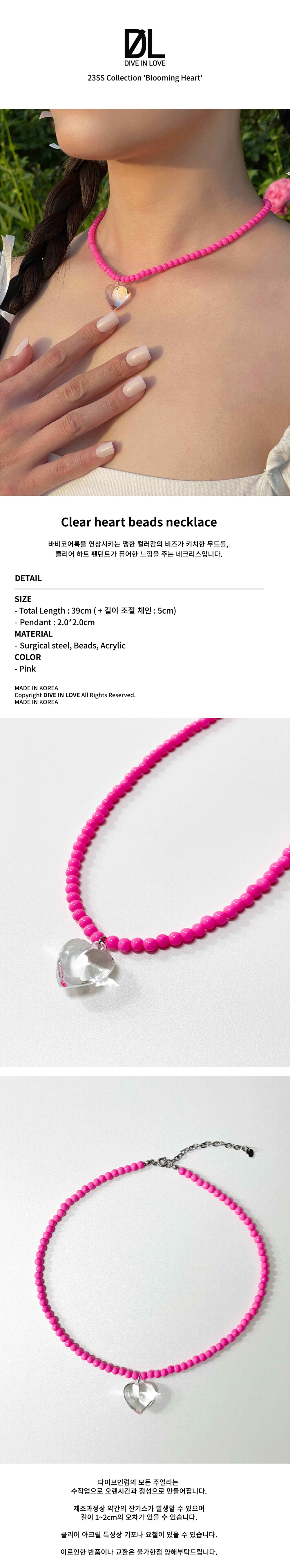Clear heart beads necklace